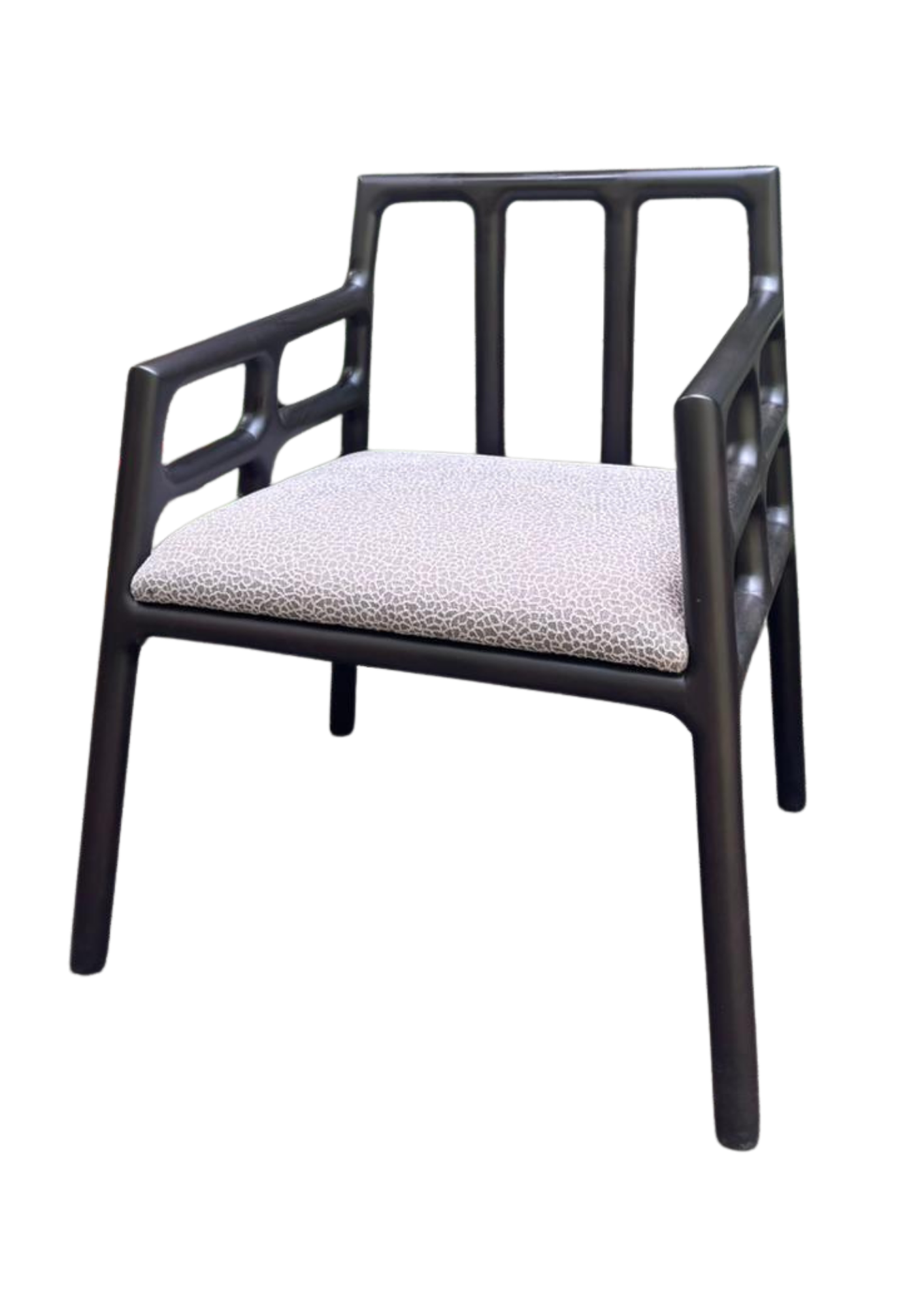 Upholstered seat with wood base/legs in wood stain finish